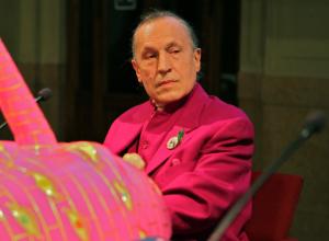 Lungo omaggio a Luigi Ontani. Arte Fiera Art First 2012 dedica per il terzo anno un’intera serata all’opera di un artista di portata internazionale. Ecco allora interloquire con Ontani, in un dialogo dotto e scherzoso, il curatore e critico Renato Barilli, che ne ripercorre la carriera con immagini e video che scorrono le sue performances su maxi-schermo, dagli anni Sessanta a oggi. Ontani, in un completo di raso indiano color magenta, segue e corregge divertito l’omaggio al suo narcisismo riconosciuto e fantasioso. Dai dipinti-citazione dei pittori eletti a pantheon d’ispirazione, alle ceramiche fino ai tableaux vivants e le sue celebri maschere all’insegna della poetica dell’evasione.
