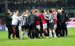 Ci sono stati più riferimenti alla mafia in Milan-Juve che in un’intercettazione di Dell’Utri. Non per la presenza di Berlusconi in tribuna, o semmai anche per quello, ma soprattutto per le dichiarazioni dell’allenatore della Juventus Antonio Conte. Sembrerebbe che nei sottopassaggi di San Siro, Conte avrebbe detto ad Adriano Galliani “Voi siete la mafia del calcio”, proprio mentre Buffon, il portiere della Juventus e della nazionale di Prandelli, convinto sostenitore dell’etica nel calcio dichiarava “Non ho visto la palla entrare ma anche se l’avessi vista, non l’avrei mai detto all’arbitro”, tra gli applausi corali dei detenuti sotto 41bis.