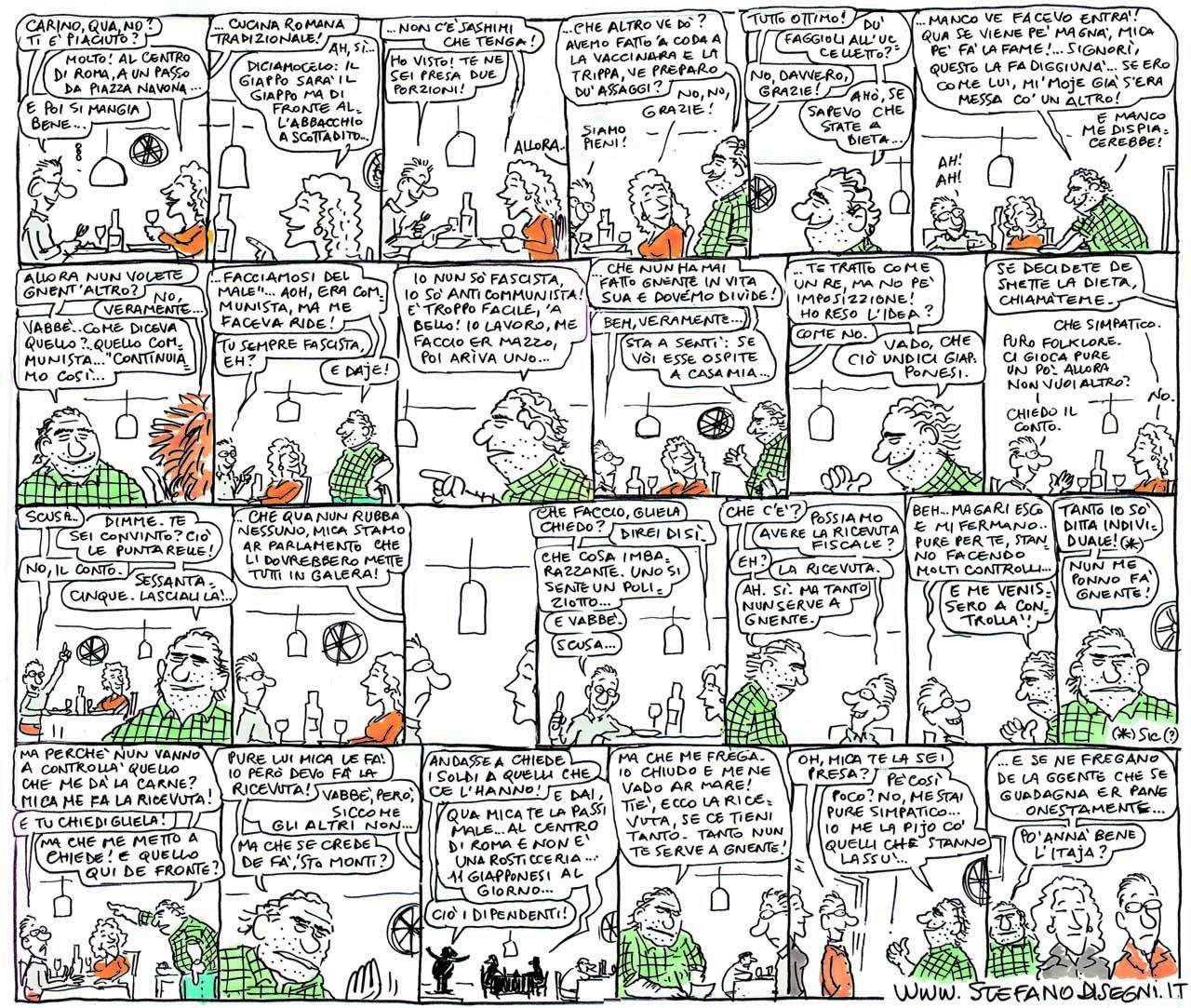 Metti una sera a cena, locale simpatico, cibo buono, oste gradevole, forse un po’ troppo gradevole. Metti di mangiare fino a non poterne più, cucina romana tradizionale. Sincera e onesta. E infine di chiedere il conto. E perché no, la ricevuta. Ecco, appunto, scordati la ricevuta