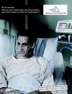Ma dalla headline si capisce subito l’intenzione dei pubblicitari: «Signor candidato, dobbiamo metterla in una situazione del genere perché lei rifletta sull’eutanasia?». Simple, direct, powerful, come direbbero i colleghi americani. Gli altri soggetti ripresi nella campagna sono ovviamente gli altri due candidati alle prossime elezioni francesi che, con Sarkozy, condividono tutti una netta opposizione all’eutanasia: François Bayrou, leader di centro, e Marine Le Pen la leader dell’ultradestra. Si tratta della campagna per promuovere la grande manifestazione che si terrà il 24 marzo a Parigi, a Place de la République, per modificare la legge del 2005 sull’eutanasia. L’azione è partita mercoledì scorso dalla rivista Les Inrocks preceduta da un lancio virale su Internet. E sta spopolando.
