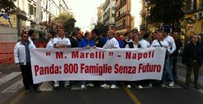 “Se nelle ultime settimane non avessimo fatto pressioni non sarebbero mai scesi in piazza con noi”. A sentire Filomena, cassintegrata iscritta alla Uilm, dietro all’unità sindacale ritrovata oggi a Napoli ci sarebbero le pressioni degli operai più che la volontà dei loro rappresentanti. Fosse stato per loro, dicono, questa mattina sarebbero volentieri rimasti a casa. E tuttavia, fa un certo effetto vedere sfilare segretari e responsabili di Cisl, Uilm, Ugl e Fismic accanto a quelli della Fiom alla testa del corteo organizzato dai lavoratori della ex Ergom, oggi Plastic Components-Magneti Marelli di Napoli.
