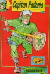 È stato risputato da Internet un fumetto di ben 23 pagine e risalente al 2006 (si scarica qui). Si intitola Capitan Padania e racconta le gesta di un bullo con casco e spada laser, congegni elettronici e “scudo telecomandanto” che sguazza tra i leghisti e vuole la “Padania libera”.