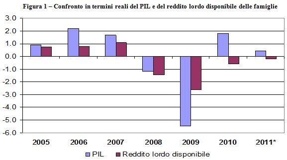 *Il reddito lordo disponibile del 2011 è stato stimato con l’andamento dei dati destagionalizzati dei primi tre trimestri.