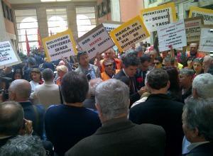 Era stato fischiato il primo maggio. Ora c'è stata una manifestazione in piazza. Nelle intenzioni c'è quella di traferire a una società la gestione di edilizia pubblica, viabilità e infrastrutture, verde, patrimonio, cimiteri e gestione degli impianti sportivi. Una riorganizzazione che impone il trasferimento di assunzioni di 90 persone