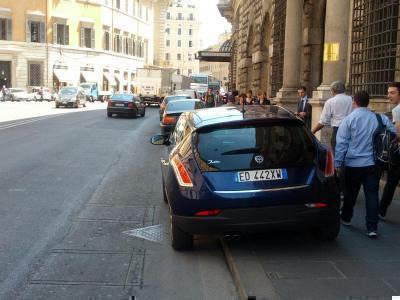 Le auto erano parcheggiate di fronte al Ministero della Funzione pubblica, occupando metà del marciapiede e ostacolando gli autobus che hanno la fermata pochi metri più avanti.