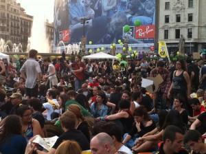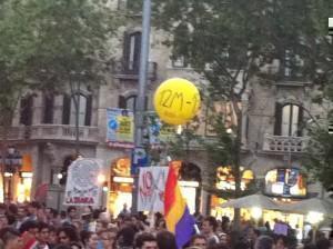“La Spagna ha bisogno di gente onesta”, “No alla precarietà sul lavoro, reddito minimo universale” o “Il popolo è la soluzione, continuiamo” sono alcuni degli slogan branditi nel centro di Barcellona lo scorso 12 maggio.
