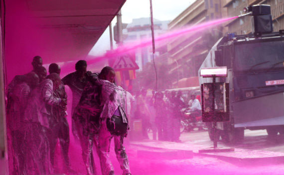 Polizia spara vernice colorata sui dimostranti, Uganda, 2011