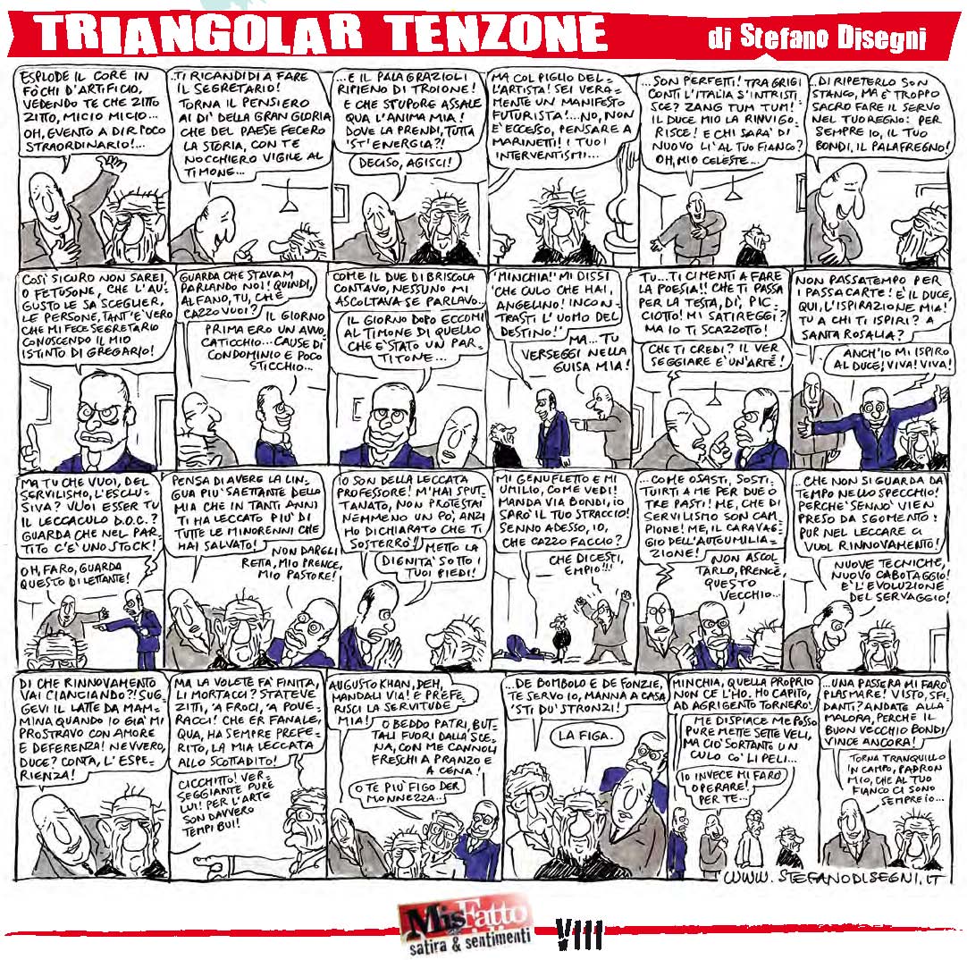 Sfida in versi tra Bondi, Alfano e Cicchitto. Ognuno di loro vuole essere il preferito del Cavaliere, ora che ha annunciato la sua ricandidatura. Ma lui sembra non curarsene troppo, visto che la sua passione è sempre la stessa.