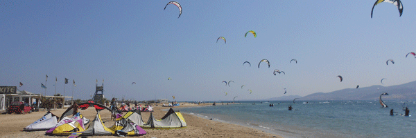 Ma c’è un angolo della Grecia dove non si parla di spread e di euro che cola a picco, c’è un lembo di spiaggia incontaminata (pardon, la parola è abusata, ma quando ce vo’, ce vo’) dove un gruppo di ragazzi, di diversa nazionalità, olandesi, francesi, austriaci, italiani, svizzeri e ovviamente greci, tra i 20 e i 30 anni, dunque in età, particolarmente a rischio categoria precari e disoccupati hanno imparato a “volare” con la tavola ai piedi. E lo fanno insegnando al Kite ProCenter di Paros, perla delle Cicladi. Una via di mezzo fra un ciringuito di Formentera e una beach house alle Hawaii, dove tra l’altro lo sport è nato, zigzagando sulle onde.
