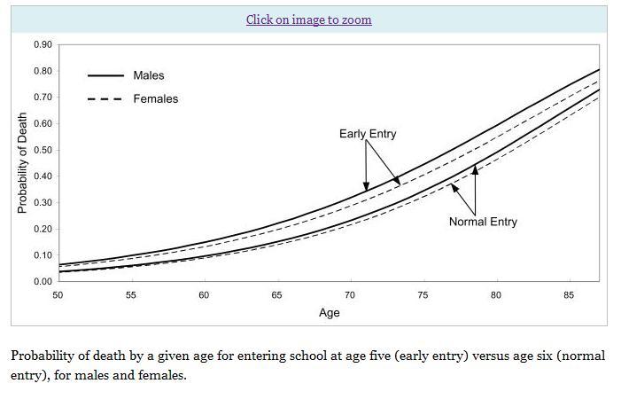 Ma i guasti dell’ingresso anticipato non si fermano ai risultati scolastici. Un colossale studio effettuato su un arco temporale di 80 anni (se n’è parlato anche in Italia) dimostra che chi va a scuola prima non solo è più propenso ad avere problemi emotivi e a consumare alcolici, ma addirittura vive di meno.