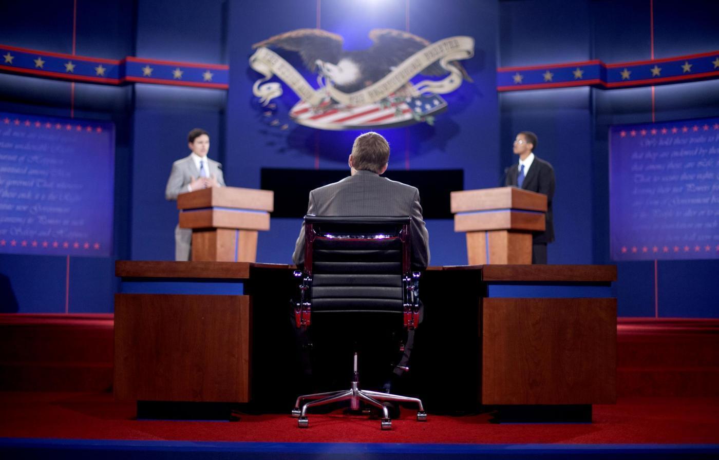 La formula ha più di cinquant’anni – la prima volta fu nel 1960 con il duello stravinto per telegenia da Jfk su Nixon – e non è mai cambiato veramente. I contendenti hanno tempi e modi (in piedi davanti alla tribunetta, seduti di fronte a un tavolo) stabiliti dalla regia con precisione assoluta. Minutaggio calcolato al secondo, divieto tassativo di interrompere e parlare sopra la voce dell’altro, cambiare argomento, sforare i tempi. Tutto è deciso in anticipo, comunicato ai “concorrenti” che si devono allenare (con sparring partner di qualità) a risposte brevi ed esaurienti. I dibattiti sono guidati da anchormen (quest’anno anche un’anchor woman) di lunga esperienza e provata indipendenza, che non escono mai dal dettato del format e costringono i candidati a rimanere sul tracciato, evidenziando eventuali digressioni.
