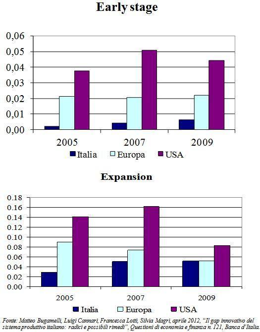 Le start-up innovative sono una fonte di crescita importante nelle economie avanzate. Giusto interrogarsi su vincoli alla loro diffusione. Il problema delle start-up è fondamentalmente quello dei finanziamenti. In quanto basate su progetti innovativi, è difficile per un potenziale finanziatore valutare la qualità del progetto. Ciò è particolarmente vero in Italia, dove domina il credito bancario, poco adatto a finanziare progetti rischiosi. La via maestra da seguire è di accrescere la platea di finanziatori che hanno i fondi e le competenze per far crescere queste imprese: venture capital, private equity, business angels eccetera. In Italia questi mercati sono ancora poco sviluppati rispetto al resto dei paesi industrializzati (si veda la figura sottostante). Bisogna agire a monte: sviluppare gli investitori istituzionali (leggi fondi pensione), che canalizzano i fondi verso quelli specializzati. Il decreto cerca di intervenire direttamente sulle start-up. Interventi diretti vanno regolamentati, ma normative troppo complicate possono avere effetti indesiderati. Le condizioni per essere definite “start-up innovative” possono contribuire a esacerbare le peculiarità del sistema imprenditoriale italiano, basato su piccole imprese a conduzione familiare: in particolare, quella che prevede che il 51 per cento del capitale debba essere di persone fisiche e che il fatturato sia inferiore a 5 milioni di euro. Altre sembrano piuttosto velleitarie, quale il crowdfunding. Altre ancora possono dare origine a distorsioni di vario tipo, come gli incentivi fiscali a chi investe in startup. Anche il sostegno dell’Ice e la certificazione degli incubatori ricordano un film già visto, e non a lieto fine.
