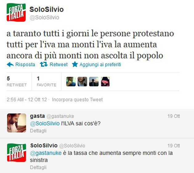 "Betulla" ha dei problemi con apostrofi e tasti delliPad, mentre Saviano racconta la reazione delle truppe dei Savoia quando entrarono nei bagni della Reggia. Intanto il "Celeste" si scatena (soprattutto con "(sal)VINI", come scrive lui). Politica (e non solo) a colpi di tweet