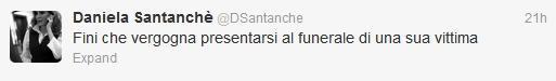 Ci si è indignati invece per il trattamento riservato dai militanti fascisti a Gianfranco Fini, che ha ricevuto ingiurie, spintoni e, riportano i cronisti, anche sputi. Con l’approvazione, a quanto pare, dei leader della destra. Dopo il funerale, Daniela Santanché ha scritto su Twitter: “Fini, che vergogna presentarsi al funerale di una sua vittima”.
