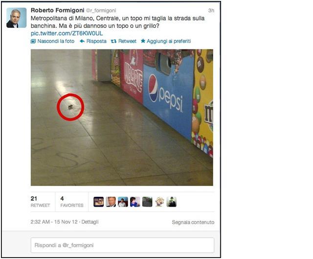 L‘ultimo esempio, in ordine di tempo, il tweet di Formigoni (15 novembre) che vedete qui sotto: