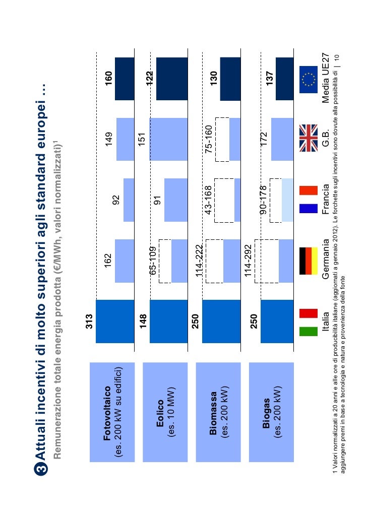 Fino al 2012 gli incentivi italiani erano particolarmente alti se paragonati al resto d’Europa, a dispetto del crollo dei costi di produzione e di installazione dei pannelli registrato negli ultimi anni. Quando nell’agosto 2012 il ministero dello Sviluppo economico guidato da Corrado Passera ha rivisto al ribasso gli incentivi, quindi, in pochi sono rimasti sorpresi. Più inaspettata è stata invece un’altra scelta del governo: l’introduzione di un tetto pari a 6,7 miliardi di euro al totale degli incentivi versati annualmente a sostegno del fotovoltaico. Una volta toccata quella soglia, in altre parole, nessun nuovo impianto potrà contare su finanziamenti pubblici.