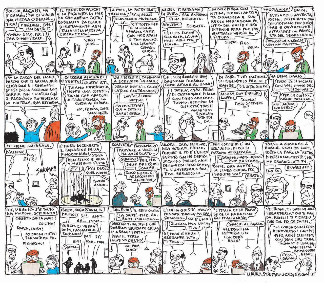 Nel momento peggiore della campagna elettorale, quando tutti i sondaggi sembrano allontanare la vittoria, il partito di Pier Luigi Bersani trova finalmente l’idea chiave per risalire nelle intenzioni di voto, il calcolatore elettronico. Una missiva cibernetica con i dieci motivi per votare Pd sta per raggiungere tutti gli elettori…