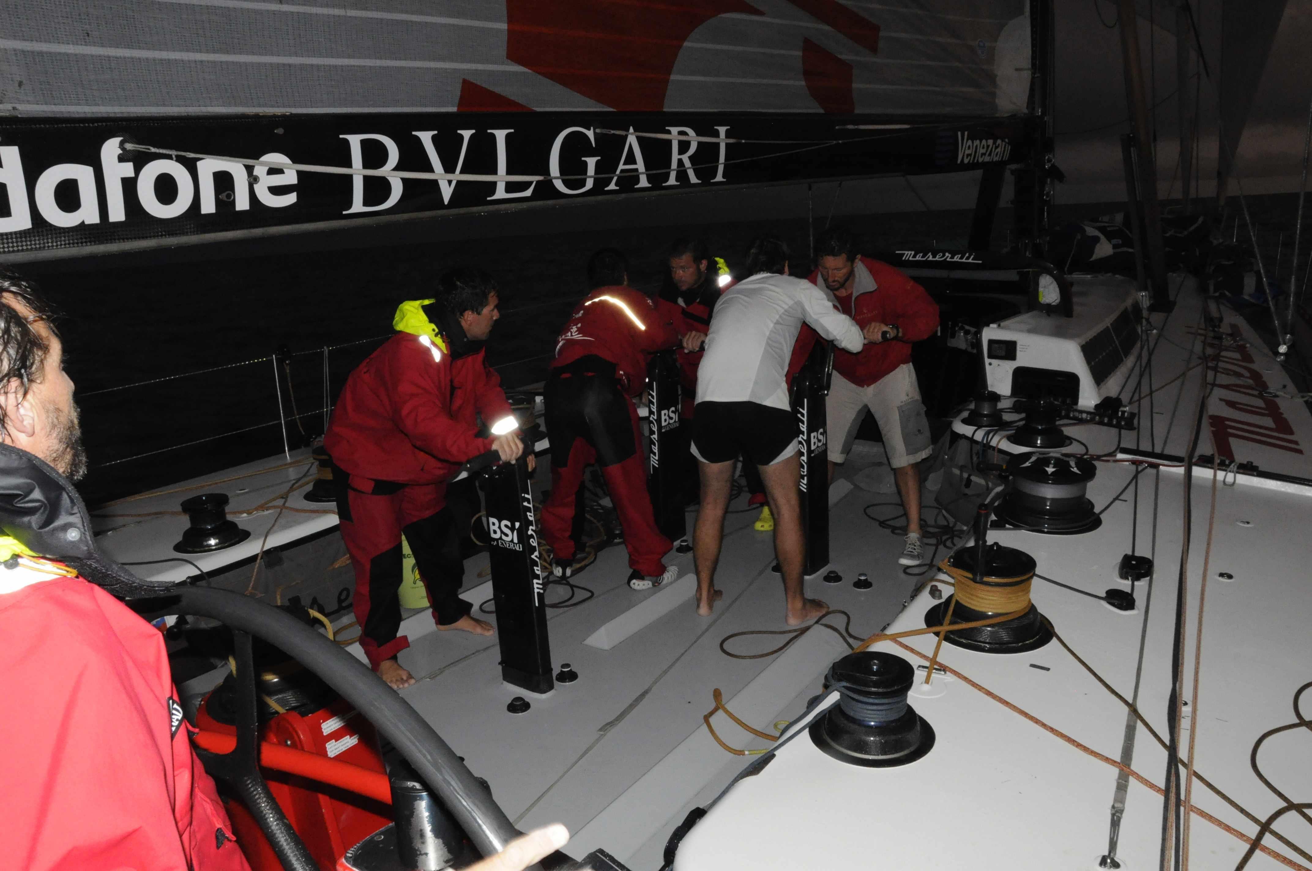 Solo sei nodi da nord est ma ci sembra un sogno. Maserati è in assetto da poco vento, tutte le vele, le sacche e le cose pesanti sono sistemate davanti all’albero verso prua, così la barca immerge il naso e solleva la poppa in modo da diminuire al massimo la superficie bagnata. Nelle prossime ore il vento aumenterà gradualmente e noi sposteremo tutto il materiale in centro barca per ottenere un allungamento del galleggiamento e un assetto più equilibrato dello scafo.