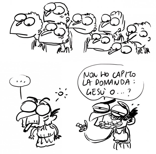 Dal vangelo secondo Napolitano, una rivisitazione dello storico referendum ‘Gesù o Barabba?’. Chissà che non aiuti l’Italia ad uscire dallo stallo.