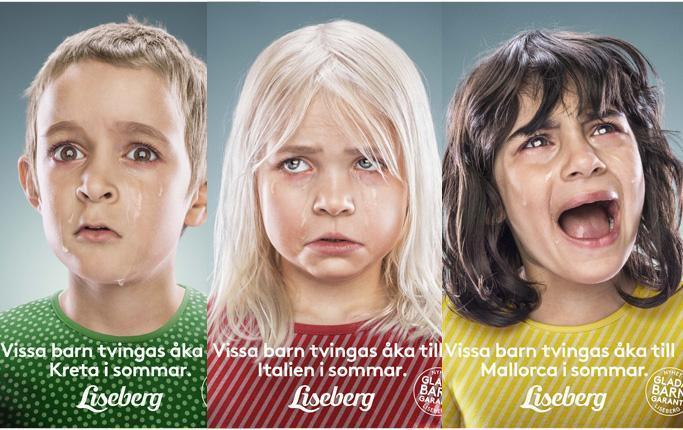 Oggi sono incappata, grazie ad una segnalazione di un mio amico, in una campagna pubblicitaria del Parco divertimenti Liseberg in Svezia, pubblicata la scorsa settimana sul quotidiano DN Dagens Nyheter, che riproduce la fotografia di 3 bambini in lacrime con la headline che tradotta in italiano recita “Alcuni bambini sono costretti ad andare in Italia quest’estate”. Lo slogan e’ lo stesso anche per le destinazioni di Majorca e Creta, che peraltro sono fra le mete piu’ gettonate dagli svedesi.