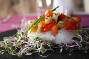 Come prima ricetta i fagottini di alici con provola affumicata e basilico, dalla tradizione siciliana, solo che nelle “Sarde a beccafico” è previsto il pecorino. Io le ho modificate, sfilettando e riempiendo le alici che si trovano in Cina (più grandi delle nostre), con un pesto di basilico e la provola: un primo filetto, il ripieno, e il secondo filetto sovrapposto. Mi hanno assicurato che il basilico in Cina arriva, io ho qualche dubbio, ma non è grave: si può sostituire con un’erba aromatica del luogo. Anche per il formaggio, del resto, si può fare una scelta diversa. Mi piace stuzzicare la curiosità dei telespettatori e inserire ingredienti cinesi nelle ricette italiane. Il secondo piatto è una ricetta molto semplice in quanto alla reperibilità degli ingredienti: filetti di baccalà cotti a bassa temperatura, su purea di patate e patè di olive. Il baccalà è molto esportato e abbastanza usato in Cina, le patate abbondano.