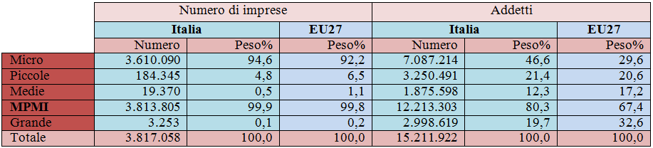 Le micro, piccole e medie imprese rappresentano in Italia, come in gran parte delle economie europee, il vero tessuto imprenditoriale, garantendo buoni livelli occupazionali rispetto alla grande impresa.