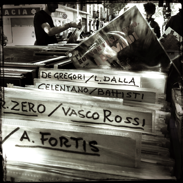 vinileDi tutti i vinili che avevo ne ho fatti fuori una buona metà (con sommo rammarico ora, ovviamente) ma aggirandomi tra le bancarelle ritrovo un’emozione che non avevo mai più vissuto in anni e capitali di lire/euro/dollari/sterline/marchi ecc. ecc. spesi in cd. La copertina quadrata di cartone è un mondo parallelo, una connessione tra il compratore e l’artista che il cd non è mai riuscito ad attivare. Le rete e YouTube ci riescono nuovamente, a volte anche meglio, ma il cd no. Ho letto un sacco di stupidaggini qua e là, gente che dice che la musica è la stessa a prescindere dal supporto, che non ha senso spendere soldi per un oggetto scomodo e ingombrante che, tra l’altro, ti obbliga a stare continuamente attaccato al giradischi per mettere il lato B.