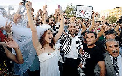Nei giorni in cui si è intensificata la “caccia alle streghe” da parte della polizia turca al guinzaglio del premier turco Tayyip Erdogan, c’è anche una bella notizia. Mentre proseguono le irruzioni notturne nelle abitazioni di chi ha partecipato alle proteste di Gezi park a Istanbul – in pochi giorni sono finite in carcere almeno 30 persone, e l’altra notte sono state picchiati e arrestati ben 28 manifestanti disarmati in un parco di Hatay al confine con la Siria – un’infermiera e un laureando in Medicina, si sono sposati.