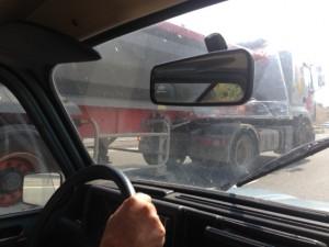 Alla velocità di crociera di 80 chilometri orari, sotto una temperatura media di 34 gradi e un sistema di climatizzazione che si riduce all’apertura dei finestrini (sperando che non ti rimangano in mano) potrebbe sembrare una bella palla, e chi conosce quel tratto monotono di autostrada sa bene che è così. Se fossimo su un’Audi o una Mercedes non scamperemmo agli sbadigli, ma con la Rabmobile è un’altra musica. Con lei non ci si annoia mai. Adrenalina garantita meglio che in Caccia al ladro di Hitchcock.