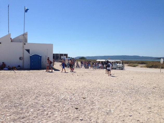 Ma come alzare l’audience (e il morale) nel secondo e ultimo giorno in Francia, con un’autonomia di non più di 40 km prima che la spia dell’acqua si accenda? Un modo ci sarebbe: un bel reportage fotografico al villaggio naturista di Cape d’Agde, celebre meta dei parigini più disinibiti. donne e uomini nudi? Ma no, certi mezzucci non fanno per noi. Decidiamo quindi di dirigerci verso la riserva naturale di Villeneuve-les-Maguelonne, striscia di Mediterraneo che si apre oltre gli stagni della Camargue, area interdetta alle vetture che si raggiunge solo con un apposito trenino elettrico. Quei furbacchioni dei francesi non la pubblicizzano in alcun modo, ma il luogo è davvero speciale. Se vi capitasse di passare da quelle parti (immediatamente a Sud di Montpellier), tenetene conto;