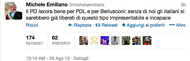 Emiliano (Pd): “Senza di noi gli italiani si sarebbero già liberati di Berlusconi”