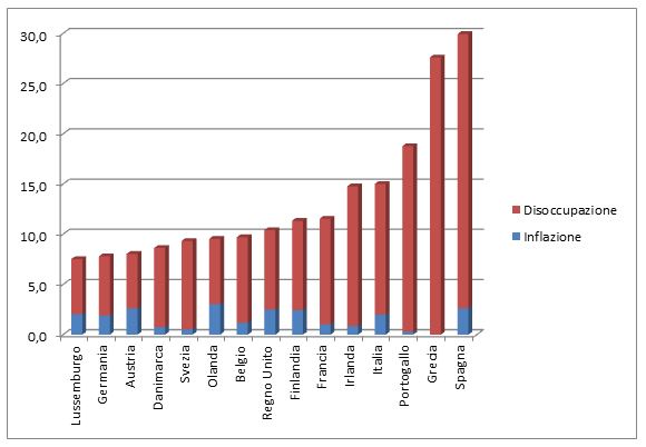 La scelta tra le due opzioni deve confrontarsi con misure attendibili delle conseguenze delle politiche. Il Misery Index, ideato dall’economista americano Arthur Okun e utilizzato come misura del disagio sociale, è dato dalla semplice somma dei tassi di inflazione e disoccupazione.