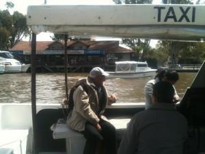 Ognuno deve trovare il suo canale: e infatti l’indomani siamo andati alla stazione del Retiro e dopo un’ora di treno (foto 1), attraversando le favelas che circondano Buenos Aires siamo arrivati tra i tanti canali del maestoso e intricatissimo delta del Rio de la Plata, dove si trova Tigre. Per la caccia al nostro uomo il cielo ci regala una giornata fredda ma soleggiata. Come a Venezia ci aspettano diversi battelli, alcuni di linea, altri turistici, per condurci alla scoperta del delta. Optiamo per un motoscafino-taxi a cui diamo l’indirizzo (foto 2).