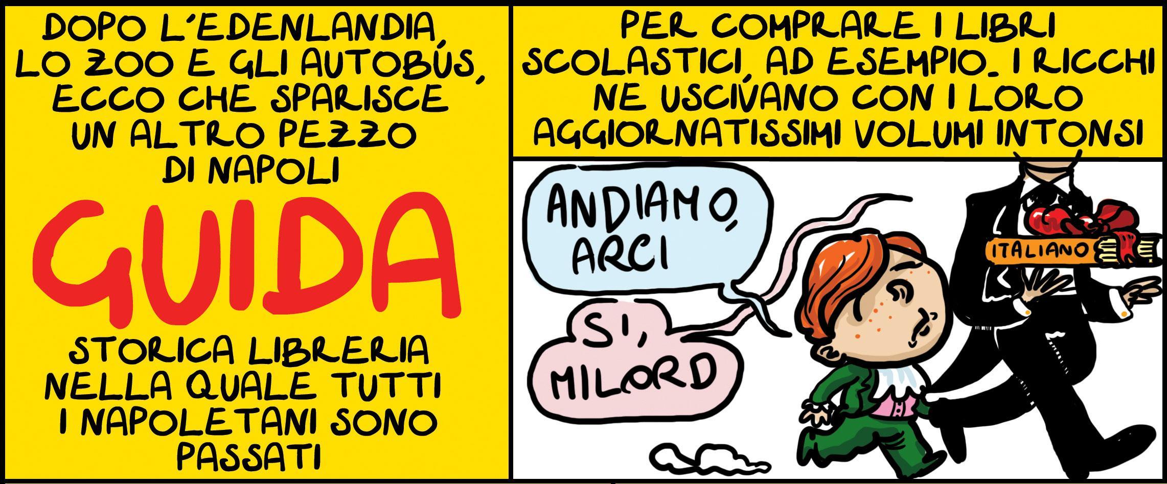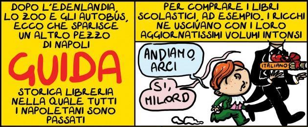 Napoli continua a perdere pezzi: Guida, storica libreria di Port’alba, sta per chiudere i battenti dopo 100 anni di vita. Un’altra bella notizia per la città dopo lo sfratto dell’Istituto nazionale degli studi filosofici, la chiusura dell’Edenlandia e il rogo alla Città della scienza. Però c’abbiamo il lungomare liberato.