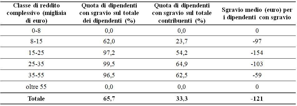 Inoltre, i dipendenti pubblici avranno ancora i redditi nominali fermi per legge. Una piena rivalutazione all’inflazione si è verificata di recente solamente per le pensioni medio-basse. Eppure, chi avrà nel 2014 un aumento del reddito nominale si vedrà ridurre, a causa del fiscal drag, il beneficio derivante dall’incremento della detrazione. Per fare un esempio, un dipendente con un reddito complessivo di 30mila euro risparmierà, nel 2014, 114 euro grazie alla maggiore detrazione,; se il suo reddito salirà al tasso di inflazione programmato dell’1,5 per cento, lo sgravio effettivo si ridurrà a soli 30 euro, il resto andando a compensare l’incremento reale dell’onere dell’imposta. Per chi ha 17mila euro, invece, il guadagno scenderà da 173 a 135 euro. La maggiore detrazione riuscirebbe a garantire un beneficio netto, in presenza di redditi che crescono al tasso di inflazione, fino a 36mila euro circa.