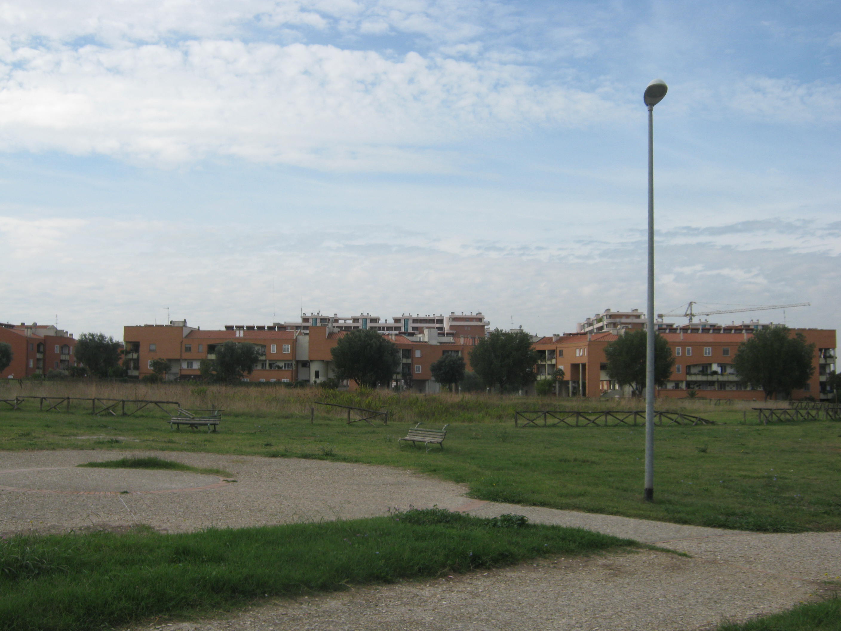 Dall’altra parte c’è un parco. Che si distende fino a via Francesco Menzio. I palazzi che ci sono, sembrano lontani. Come i due fronti di edifici, dalla forma compatta, che perimetrano su due lati l’area a verde. Poco distante ci sono gli scheletri affiancati dalle gru e i profili compiuti dei 12 palazzoni a nove piani delle Terrazze del Presidente, il complesso ancora in costruzione che promette molto. Da quel che si può vedere più di quanto potrà realmente offrire.