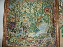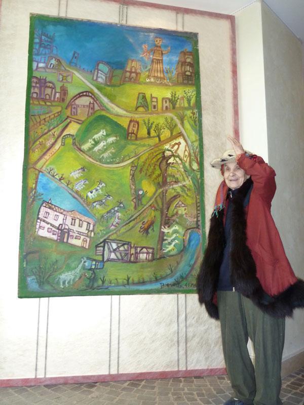 Il suo è modo di comunicare, lo fa anche con canti d’amore del nuorese, i cosiddetti “mutos”. Proprio agli inizi degli anni ’80 prende in mano i pennelli e dipinge. Narra la sua vita, la natura, e quelle pietre simbolo di una storia che unisce la sua terra d’origine e la terra dove ora vive. Passato e presente in un intreccio inestricabile. Le pareti si coprono di colori e immagini e dove non ci sono pitture è appeso un suo quadro o un arazzo, come nella camera da letto, dove racconta la sua vita da bambina, quando andava alla fonte a prendere l’acqua.