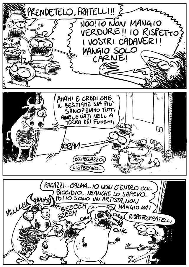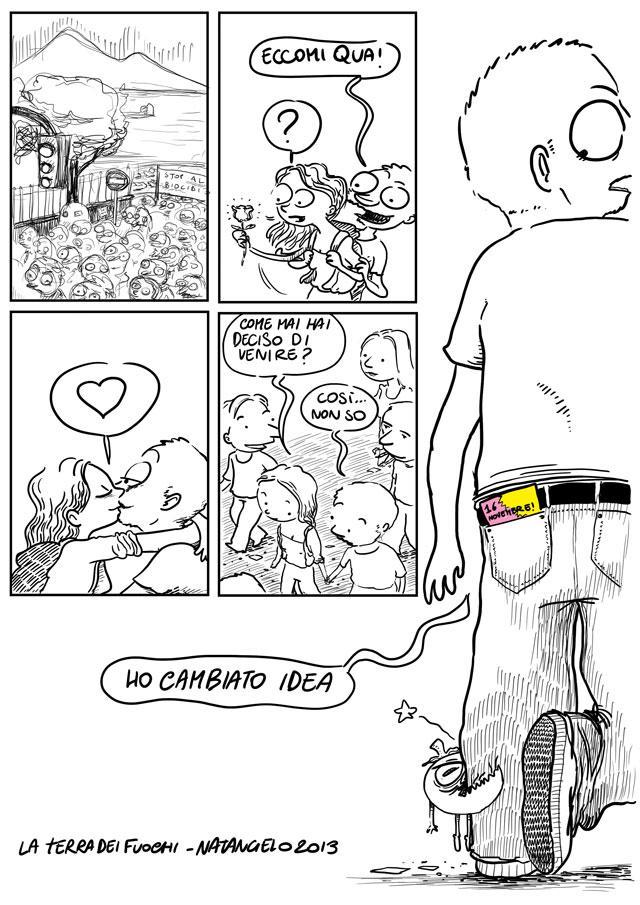 Il 16 novembre a Napoli ci sarà Fiumeinpiena, una manifestazione contro il biocidio. Tutti ormai avremo letto o sentito parlare della ‘Terra dei fuochi‘ che non è una nuova soap opera – come scrivo nel fumetto di seguito – ma una zona tra Napoli e Caserta devastata da roghi di rifiuti sversati illegalmente.  Non sarò a Napoli, sabato, ma il mio apporto – minimo – ho voluto comunque darlo.