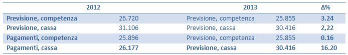 (1) La riduzione non è esattamente dell’ 8,6 percento presumibilmente perché all’ epoca della compilazione del documento (dicembre 2012) la previsione per il 2013 era diversa.