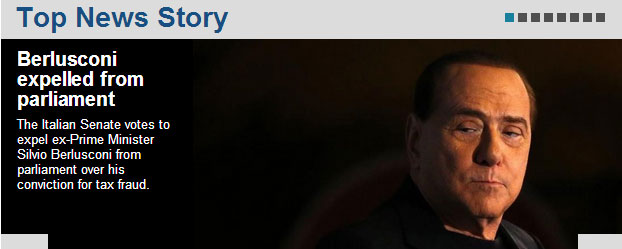 Il New York Times colloca la notizia nella fascia rossa delle ‘ultim’ora’: “Berlusconi espulso dal Senato in seguito alla condanna per frode fiscale”. Der Spiegel, che con The Economist è uno dei media tradizionalmente meno teneri con Mr B, scrive un po’ brutalmente: “Il Senato butta fuori Berlusconi”, con un’enorme foto in primo piano del Cavaliere, di cui poche ore prima denunciava “trucchi legali e pressioni politiche” per farla franca un’ennesima volta.
