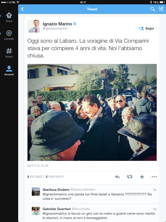 La metto solo in guardia, Sindaco, sul fatto che i romani sono estremamente cinici. Pensi solo a che smacco sarebbe, se per il successore si dicesse: “Troppo facile venire dopo Marino….”.