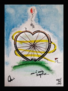 Canzone ciclistica, che parla della dualità umana: l’uomo in bici e l’uomo senza, l’uomo nel pieno di una storia d’amore e l’uomo senza; quando c’è passione e vitalità, quando no. La spola è traumatica, è sconvolgente se si è abituati a pedalare – scalzi e spauriti – rimettere i piedi a terra.