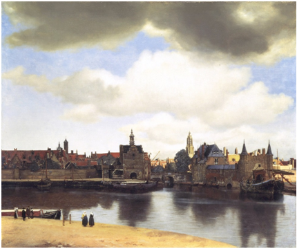 Eppure qualcosa non torna e, fatte salve le smentite specialistiche (coi detrattori capeggiati da David G. Stork, impegnati a sconfessare la teoria di Hockney sulla Secret Knowledge vermeeriana), mi pare che proprio Bergotte (dunque un interposto Proust) ed alcune più recenti riflessioni di Lorenzo Renzi, filologo egregiamente eclettico, possano dare l’abbrivio ad un discorso alternativo, per il quale una più essenziale inquietudine alimenta la strategia pittorica dell’olandese ‒ ciò che rende ogni sua opera anzitutto una “cosa mentale” (Daniel Arasse, L’ambizione di Vermeer), dunque una sorta di ‘verismo speculativo’ fondato non tanto sulla ripetizione della realtà, quanto piuttosto su di una continua messa in scena di ciò che, proprio in senso al costituirsi della quotidianità, ne vanifica e disgrega ogni rappresentazione che voglia intendersi esaustiva giacché fondata su di un criterio di fotografica corrispondenza. Il che, a mio parere, avviene secondo due opposte direttrici ‒ una (1) micrologico-topologica e l’altra (2) macrologico-geografica ‒ che vado appunto brevemente ad esporre.