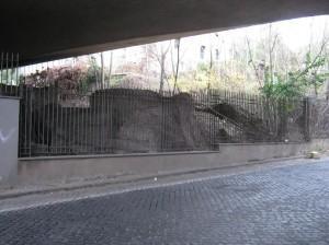 I lavori per la realizzazione del viadotto avevano offerto l’occasione per scoprire sul lato opposto di via Appia Antica, altre strutture, ancora a carattere funerario. Si è deciso di non distruggerle. Non si è fatto nulla per musealizzarle. L’acqua che vi cola al di sopra in occasioni delle piogge, oltre a assicurare le condizioni migliori alla crescita di funghi e muffe, non contribuisce alla loro conservazione. Sono anch’esse all’interno di una cancellata in ferro. Inaccessibili. Senza alcun indicazione.