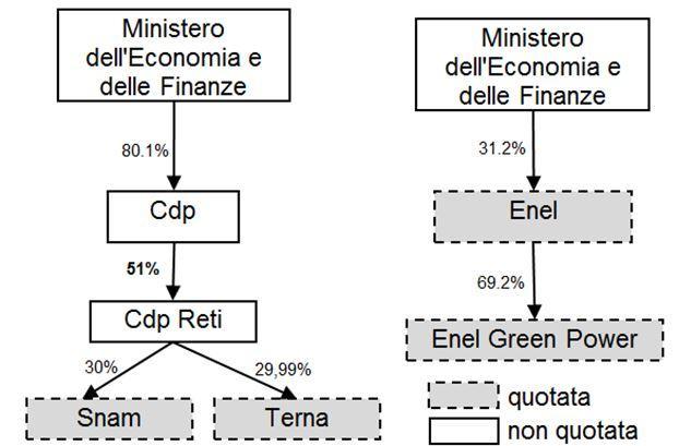 Nel recente passato, invece, tale strategia è stata perseguita dall’Enel, altra società controllata dal Mef, la quale ha prima conferito le attività relative alle energie rinnovabili in Enel Green Power per poi cedere le quote di minoranza. Ora il ministero controlla il 31,2 per cento di Enel, che controlla a sua volta il 69,71 per cento di Enel Green Power (vedi catena nel grafico di destra).