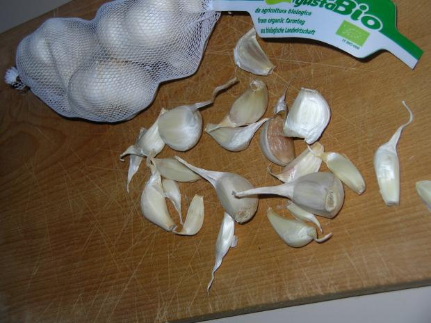 Quindi prepariamo i bulbilli. L’aglio l’avrete già in casa no? Io in genere compro l’aglio biologico che trovo facilmente in un super della mia città e non costa molto. Lo faccio soprattutto da quando per lavoro scrivevo comunicati stampa sui sequestri di aglio provenienti dalla Cina. E chi ci pensava che anche l’aglio potesse essere un prodotto importato? Comunque sia, da allora sto molto attenta a dove l’acquisto. E questo potrebbe essere un motivo in più per coltivarselo da soli. I bulbilli vanno ripuliti ben bene della tunica bianca, poi con le forbici bisogna tagliare la parte più secca. Così l’aglio è pronto per essere piantato.