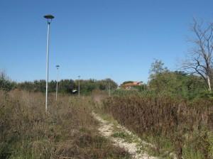 Mentre il cantiere procede spedito ci si può inoltrare in quel che resta del parco. Contrassegnato dall’abbandono oltre che da una piccola discarica esistente all’estremità di via dei Cluniacensi. La vegetazione infestante copre quasi ogni cosa. Tutto sembra in abbandono da tempo. Ma non da sempre. Si vede ancora una fila di lampioni, a distanze regolari. Prestando maggiore attenzione si scopre che si trovano lungo dei viali, glareati, e delimitati. Ogni cosa predisposta per l’utilizzo dello spazio. Che non c’è mai stato. Rinunciando anche alla valorizzazione dei resti archeologici noti all’estremità settentrionale dell’area. Il sepolcro circolare, del II secolo d. C., restaurato e coperto con una struttura moderna è ancora visibile. Anche se la vegetazione che è intorno, rischia di “inghiottirlo”. Comunque da tempo è il riparo di alcuni senza tetto della zona, utilizzo che ha provocato alcuni danni.