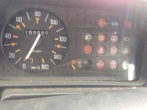 Nella notte del quarto giorno di diagonalone arriviamo a Montpelier, dove l’Hotel Le Acapulco ha da essere l’ultima sosta del giro del mondo contromano. L’appuntamento con la storia arriva l’indomani mattina, poco dopo Arles: la Rabmobile, magicamente, compie i centomila chilometri proprio in corrispondenza di un posto di ristoro sull’autostrada (foto 2). Cerchiamo dello champagne, ma non si trova. In coerenza al suo parco stile, il brindisi avviene con l’unico vino acquistabile, una non meglio identificata “cuvée Van Gogh”. Rosato e tiepidino; di certo abbiamo bevuti vini migliori, ma forse non abbiamo avuto momenti meno solenni.