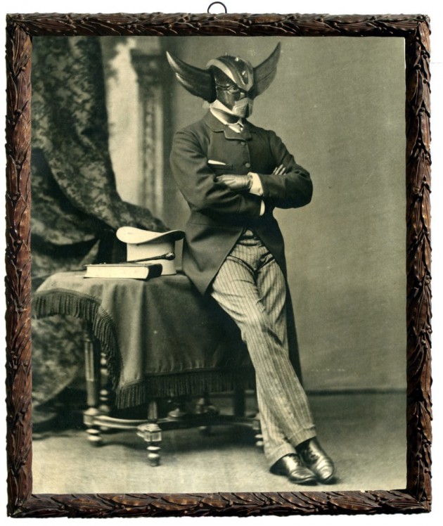 Si passa poi “alla fusione del tempo” calzando questi oggetti agli anonimi ritratti d’antan in maniera – verrebbe da dire – organica, utilizzando programmi di fotoritocco digitale. Non è finita, poiché il file ottenuto viene stampato ritornando ancora alle antiche tecniche e agli antichi materiali, con tanto di viraggio finale, per ottenere un risultato credibile, emozionante e di qualità fine-art. Giacché, va detto, i collezionisti impazziscono…