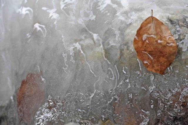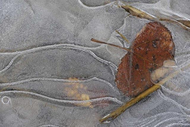 Foglie di faggio sottoghiaccio